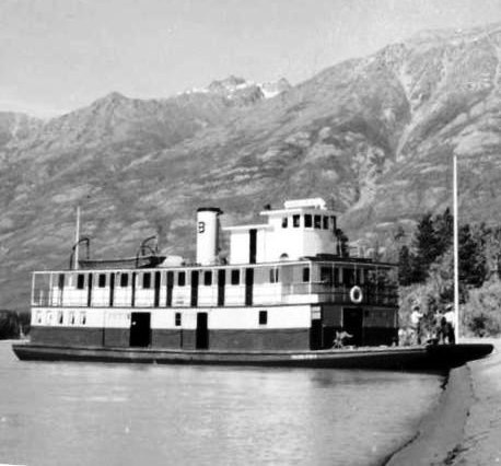 The riverboat Hazel B No. 2 at a stop on the Stikine River. (BC Archives photo F-06987, detail)