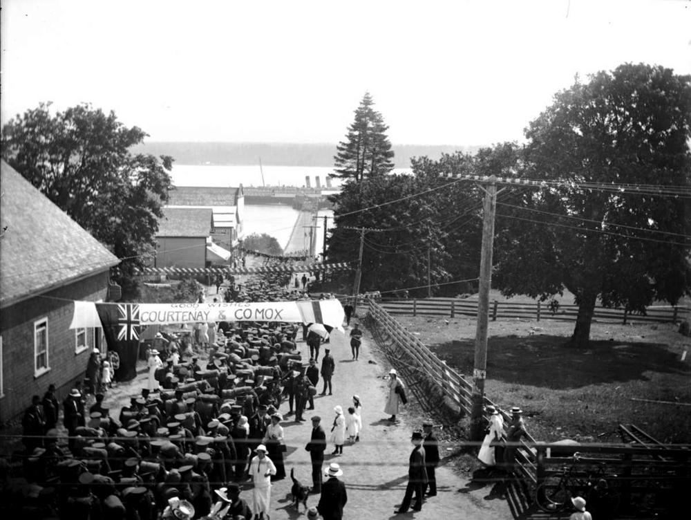 In Comox, the soldiers board the CPR steamship Princess Charlotte. Many farewells take place beside the vessel on the Comox pier. Scenes were also shot on the steamer during the trip to Vancouver, but these have not survived.