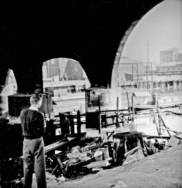 Interest in city symphonies was revived after the Second World War. In 1949 Vancouver, UBC student and film buff Stanley Fox (1928-2025) joined forces with Peter Varley (1921-2000), an art student and photographer influenced by John Vanderpant. They decided to make a documentary film about a day in the life of their city. As Fox recalled: “I found a partner in the person of Peter Varley, whom I had met years before at the film society. Peter understood what I wanted to do and we became co-creators. Then I started filming Vancouver. Not the tourists’ Vancouver, but the places and people that affected me emotionally: the downtown back alleys, Chinatown, the beaches that I played on as a child, the forgotten men on Main Street. I wanted it set on a summer Sunday when people were more open.”2