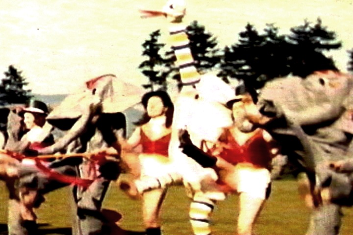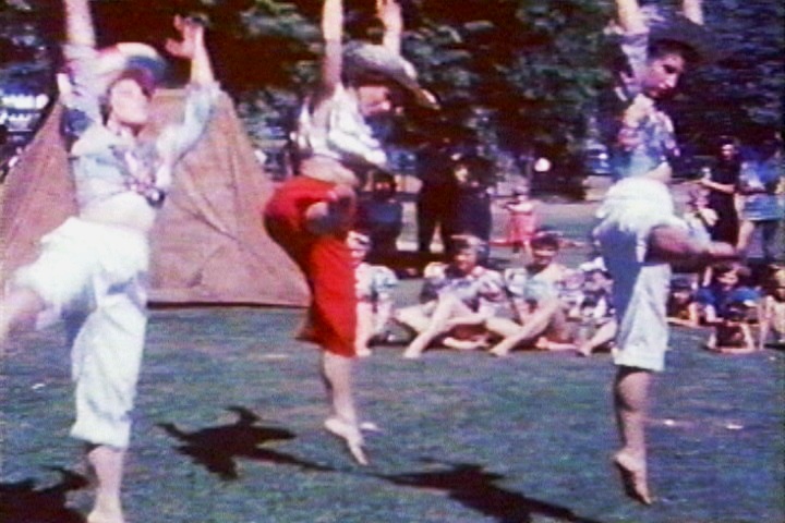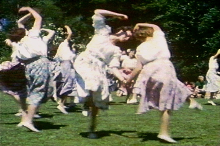 Another big section is devoted to square dancing by a large group, with the girls dressed in rustic male and female attire. This footage went on rather long, so I employed some rather clunky editing tricks and special effects. See, it shows “square dancing” — so I broke the image up into dancing squares. (Because I could, I suppose.)