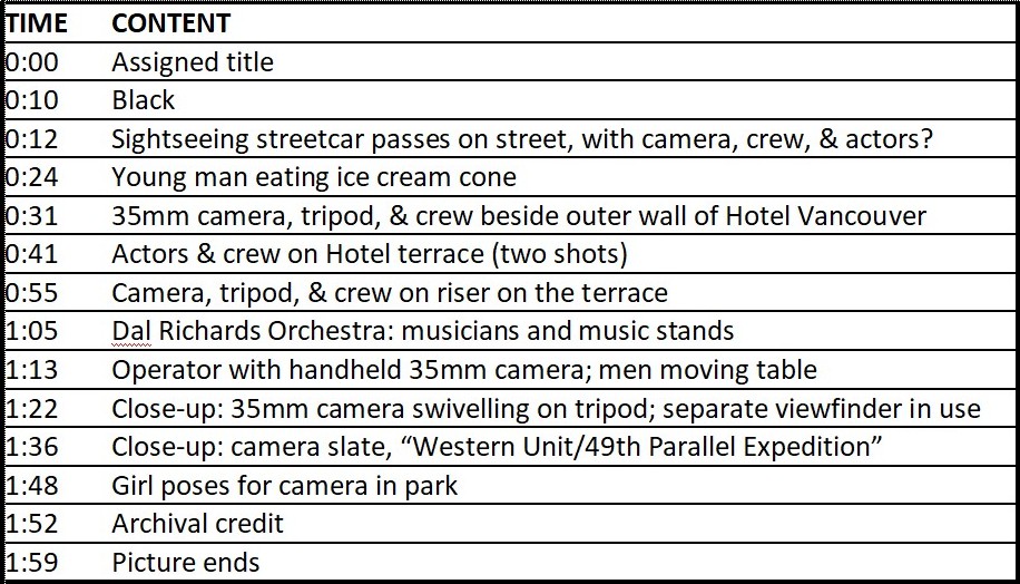 The above video clip comprises 8-millimetre amateur footage from August 7, 1940. It shows a second-unit team from Ortus Films shooting scenes in Vancouver for the 1941 British feature film 49th Parallel (released in the US as The Invaders). The amateur footage was shot by Vancouver actor Jack Bowdery, who probably worked as an extra in the local scenes.