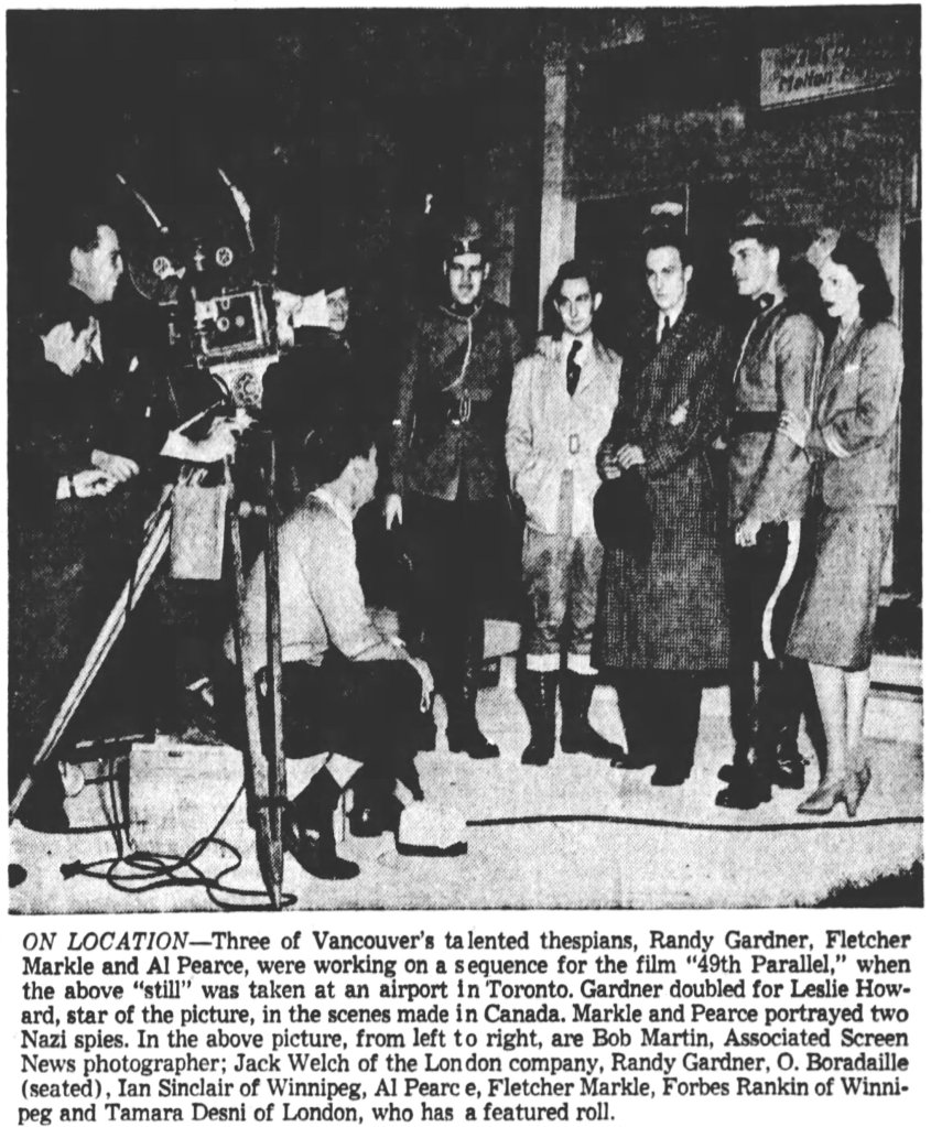 The film’s leading players included Laurence Olivier, Anton Walbrook, Leslie Howard, Raymond Massey, Eric Portman, and Elisabeth Bergner (later replaced by Glynis Johns). However, none of the stars were present for the Vancouver filming. Most of the interior scenes in which they appeared were shot at Denham Film Studios in Buckinghamshire, England.